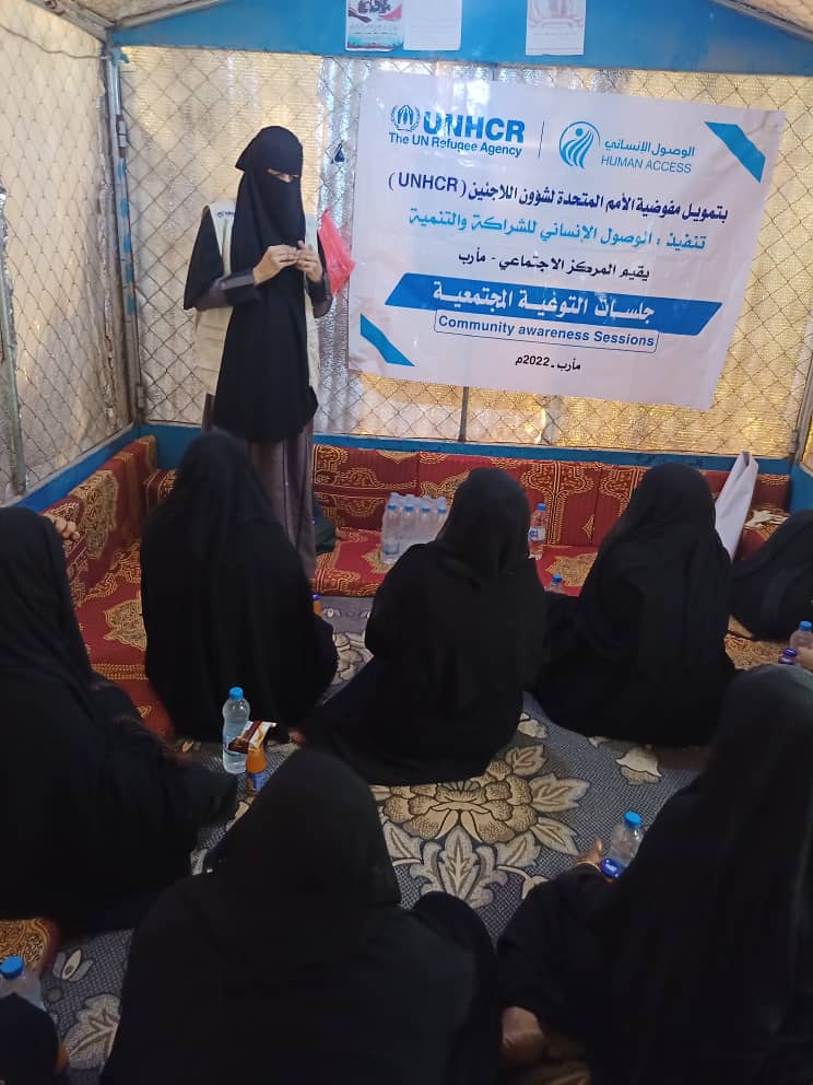 HUMAN ACCESS, in partnership with UNHCR, organized several legal awareness and education sessions targeting IDPs in Marib Governorate. The first session targeted a number of displaced educators in Al-Quoz camp in Marib city, in an effort to increase their awareness of laws and rights. It addressed the definition of work, the worker and the employer, the legal rights that the worker and the employer enjoy, and a mechanism for reporting and receiving complaints.